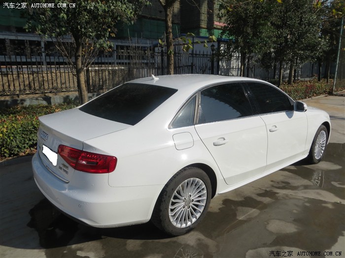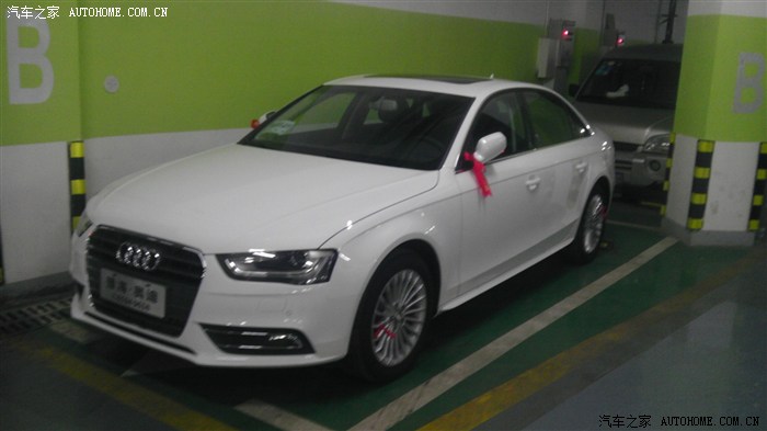 奥迪车,我第一眼就看到了A4L,(也在Q3车前纠结过,哎,无奈老婆大人的SUV梦一直困绕我)结合在汽车之家泡了2个月积累的经验,以及论坛里大家对各型号的评价,本人对于A4L的各种车型的配置可以说是了如指掌了。终于决定白色2.0TFSI技术型(具体原因不再细说了,到现在用车半年了,还是没有后悔多花的那几万RMB)。