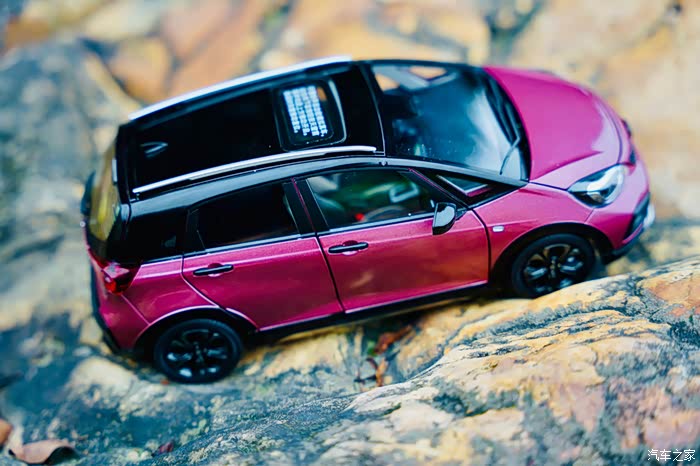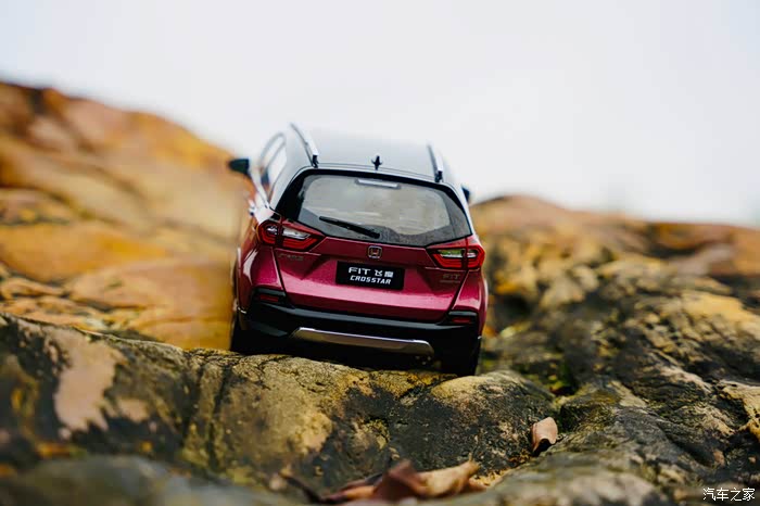 把飞度车模放在一块石头上面拍出了开在山峰的感觉。