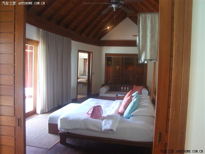 像很多朋友说的过,对于去马尔代夫的人来说第一件事就是选岛,同时对于我这种纠结的很来说更是头痛的事!每天看着网上别人写游记,攻略,和身边朋友的心得,然后按照自己的要求,最后选定安娜塔拉岛!简单介绍下这个岛吧:安娜塔拉岛由三个岛组成,五星的笛谷岛,四星的薇丽岛和一个六星岛(名字忘了),除了六星岛我们不能去,另外两个岛我们都是能坐船过去的! 我们订了从上海出发,在新加坡转机的新航的飞机(因为听朋友说新航服务什么都不错,价钱的话会高一点点)。由于是下午二点多的飞机,我和老婆提前一天开车去的上海(经过种种方案,开车去上海最方便),当天我们早早到了机场换了登机牌,然后在日上免税店逛,想着在新加坡可以买,我果断放弃了那里!新航的飞机餐真的还不错,就是空姐好像不怎么漂亮哦!到了新加坡因为时间关系没有逛,直接进了候机室(才发现里面什么也没卖)。坐了九个小时的飞机终于到达马累机场!那个机场那叫一个破啊,感觉还没我们机场好呢。拿了行李以后,我们找到我们所选岛的那个休息室(每个岛都有一个集合等待的房间,进去才发现有六队跟我们一起的呢!看好大家眼光都不错,哈哈) 小黑确认好人数并帮我们拿着行李,带我们上了快艇,热情的小黑给我们每人发了毛巾和水(黑呼呼的毛巾带着薄荷和柠檬的味道,真舒服),大约过了四十分钟我终于到达我期盼已久的马尔代夫了,远远的就看见码头站着一排人,我们一下去我们敲着鼓,一个个小黑微笑着对我们say hello !不对,他们中有一个中国人(这个岛现在只有二个中国人,一个在做spa的地方,另一个就是她了,很亲切的哦!)她帮我们确认好房间并介绍了岛上的情况(才知道薇丽岛因为在重整,不能开放了!遗憾啊!不过那边一个很有名的泰国餐厅还可以去)。我们订得是二沙二水,小黑开车送我们来到沙屋,超大的房间哦!不久行李也送到了(因为礼貌我们给了他一美元小费)。期待明天的到来! 第二天我们早早就醒了,打开窗帘,就能看见不远处的大海,very beautiful! 我们赶紧收拾好去吃早餐,一路上小黑都热情的跟我们打招呼。餐厅是自助的,好多好吃的哦,早上饮料,果汁什么都是免费的(我就奇怪为什么到了中午晚上连水都要钱呢?)吃完早餐我们就回到沙屋去换衣服下水了,老婆叫我涂防晒霜,我没涂,结果晒伤了!(这就是不听老婆言,吃亏在眼前啊)我们尽情享受着这洁白的沙滩和无边的海洋,累了就在旁边的躺椅上休息,喝着树上刚摘下的椰子(不要以为是免费的哦)。晚餐我们订了自助的BBQ。我们跟一同来的上海小夫妻坐一起(正好可以弥补我们两个英语不好的人),旁边还有小黑们现场弹唱表演!自助当然是有多能吃就吃多少咯,大大的老虎虾,吞拿鱼,牛排,鸡肉,三文鱼,生蚝。。。最后我们散步回到沙屋,一路行赏夜晚的美景。 第三天依旧是去昨天的餐厅吃早餐,因为今天要换水屋了,我们在附近拍拍照就回房间等小黑带我们去水屋咯!水屋果然是更漂亮,景色更美(早知道应该四晚都住这边了)。透明的落地窗前就是大大的浴缸,连坐便器前都是透明的玻璃(鱼儿都想偷窥吗?哈哈)。大大的床前对着我们的私人晒台,早晨躺在椅子上看日出,黄昏坐那吹吹海风,真心舒服啊!晒台下面有阶梯,可以直接下去游泳,我们没事就下去浮潜!(不过白天鱼都不在这边)。如果想人对点,可以去泳池吧,那里有个超大的无边游泳池,累了小黑还会送上调好的鸡尾酒呢!晚餐我们选择了坐船去薇丽岛的泰国餐厅,那边真的是好多鱼,我们坐在海边,低头一看就是一片鱼群,连魔鬼鱼都好多呢!(可惜了这次薇丽不开放)勤劳的小黑还现场用树叶遍了小鱼送给我们! 接下来的一天,我们来的水上中心浮潜,这边好深哦,看到好多珊瑚和颜色的鱼,还有很多透明的鱼呢!晚餐我们订了烧烤餐厅,楼上是意大利餐厅,我们点了马尔代夫大龙虾,椰汁培根意大利面,披萨,还有巧克力松饼配意大利冰淇淋(这个好多人评价必点哦)。PS:是不是觉得我们很能吃?事实上我们点多了,披萨完全不用了,浪费了29刀!哎!