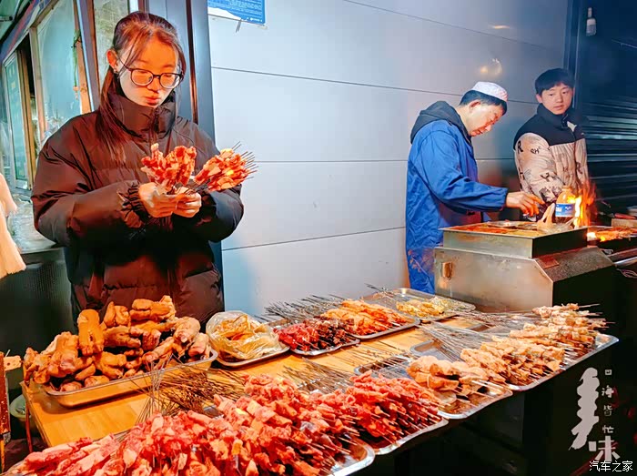 进城后,去吃烤串,都十点多了!