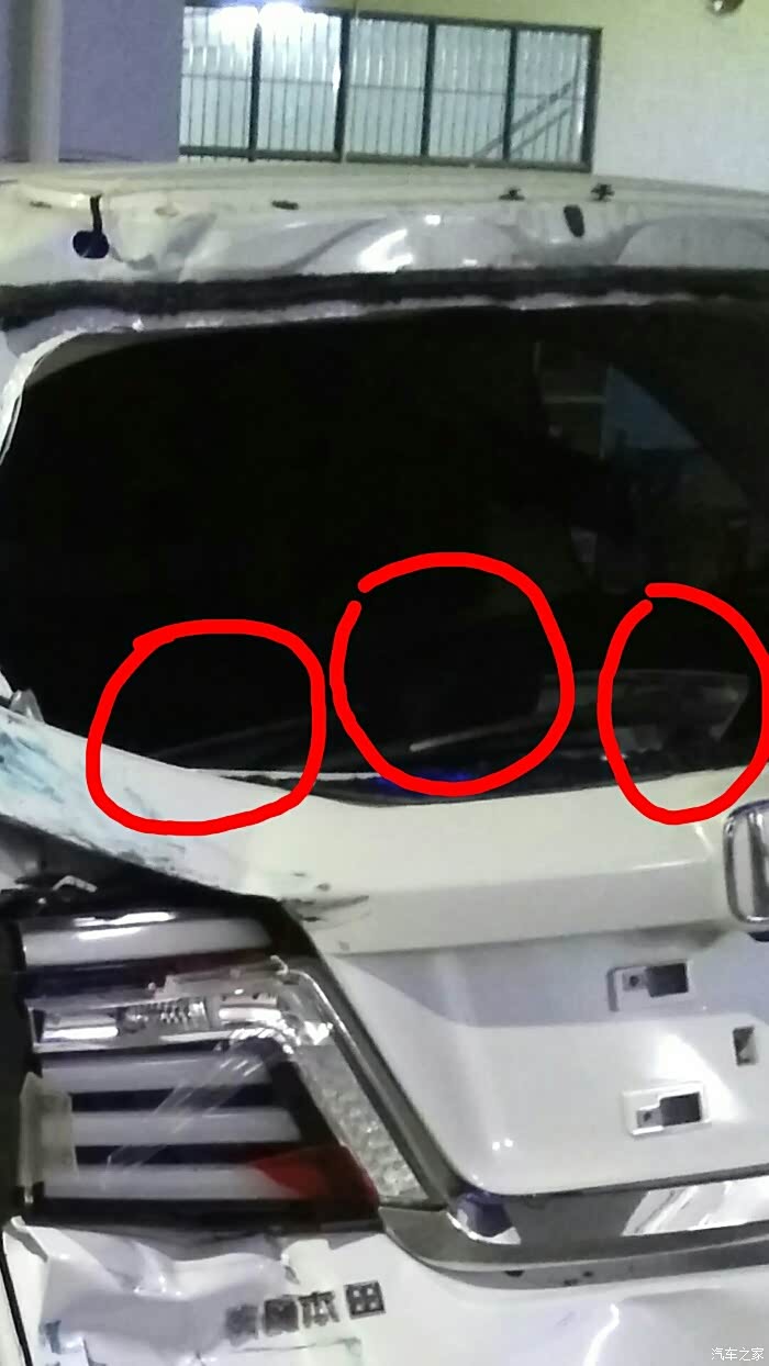 当时是夜晚,车厢内部太黑,手机像素也不高。所以没有拍,拍了也看不清。刚好有一个4s店的人过来赶人了。被撞断向前位移的第三排座椅、左后侧保险杠被4S店工作人员杂乱地扔在第三排的位置上,狼狈不堪。