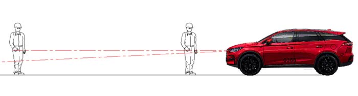 如果路面不平或者遇到上下坡,车头翘起来了,你偶尔还是会晃到对方的,就像下面这张图: