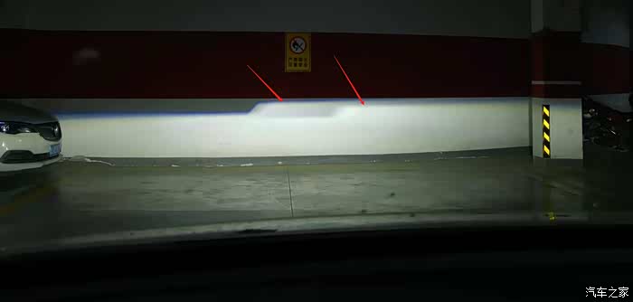 近光灯照在墙上,是这样的。