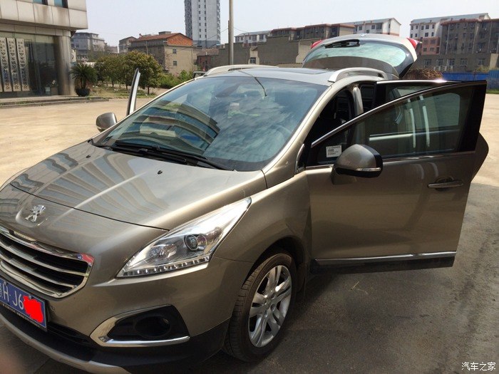 不知不觉提车已经2个月了,说起从挑车到买车的过程感觉还是蛮多曲折的。从去年开始就在准备买车了,最开始准备上15-6万的车,心里默默选中了速腾1.4豪华,奈何4s店太坑,去年十一去车展,询价从优惠7000现金到优惠3000现金,果断放弃,对,你没听错,人家还价都是越来越低,我反而一小时内询价三次得到的车价越来越高,满心失望的鄙视大众。自12月份驾驶家里风云2在烂路上托底,撞断助力泵支架和空调支架后,就萌生了买一辆suv的想法,于是乎大量查阅suv资料,刚好老妈给增加5万预算,就开始在途观,翼虎,3008(本人坚决抵制日本车)上选择了,由于上级领导弄了辆途观高配版,落地31万多,首先便排除了买盖中盖的想法,继续看翼虎和三胖,翼虎去坐了坐,感觉前排实在不如3008舒服,加上老婆大人也不太喜欢翼虎,也就排除在外,那天去看三胖的时候上车试试,方向盘真那个轻啊,比我家风2完全不一样,嘿嘿,跑起来也不错,再加上全景天窗实在是感觉好,于是就决定选它了!由于年前提车,价钱也没怎么卡到,保险也被强制在4s买了,发票年后才给开,上临牌还要自己掏500找人!4s果然是各种坑啊!不过售后感觉服务倒是还行,蓝色果然不一般!提车没几天,就被4s打电话回去要换什么油管,哎 悲剧啊,中着。