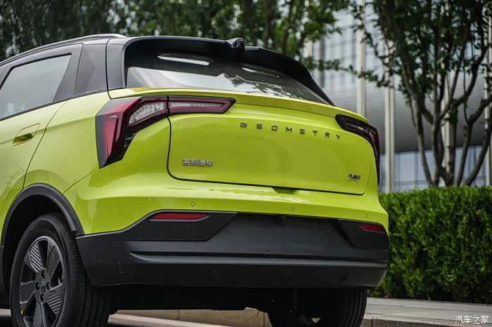 车尾部分,几何E的尾灯使用了类似“须眉”的造型,加上位置较高,让其从后面看起来挺高大的,搭配层次感丰富的后包围,观感比较时尚。