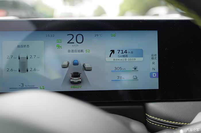 同时几何E搭载了一个L2级别的驾驶辅助系统,就目前而言辅助驾驶已经是很多车型的标配了谈不上亮点,但是对于这个价位的车来说,几何E真的还是很有诚意的,该有的配置一个不差,至少自适应巡航,可以为日常行车解放双脚带来很多便利。而且导航也可以同步到仪表盘驾驶区非常舒服。