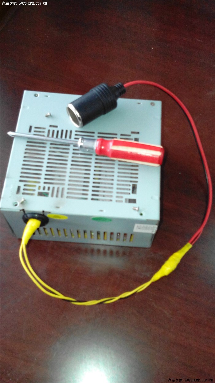 如果利用废旧资源自制一个12V电源,停下车的时候,比如车载冰厢、车载电视、车载吸尘器、车载烧水杯等等这些大功率电器就可以用交流电了。