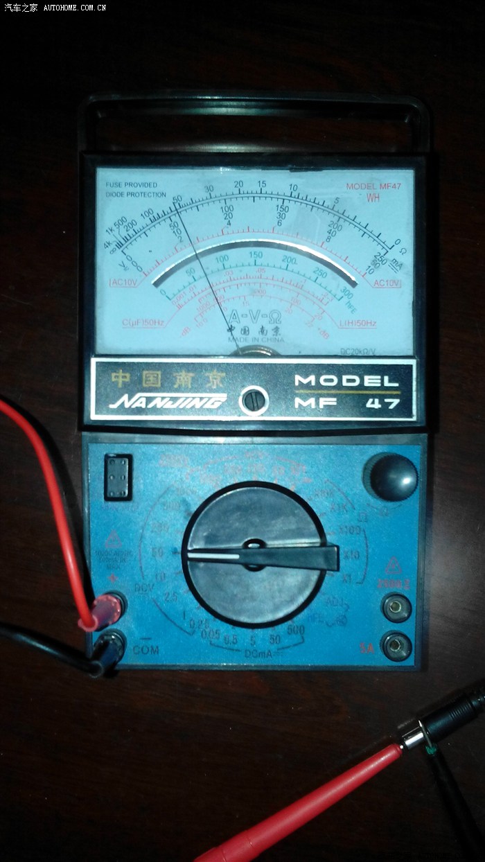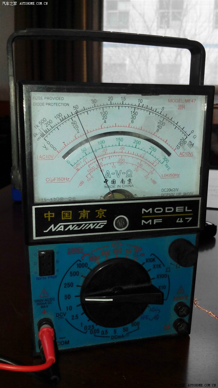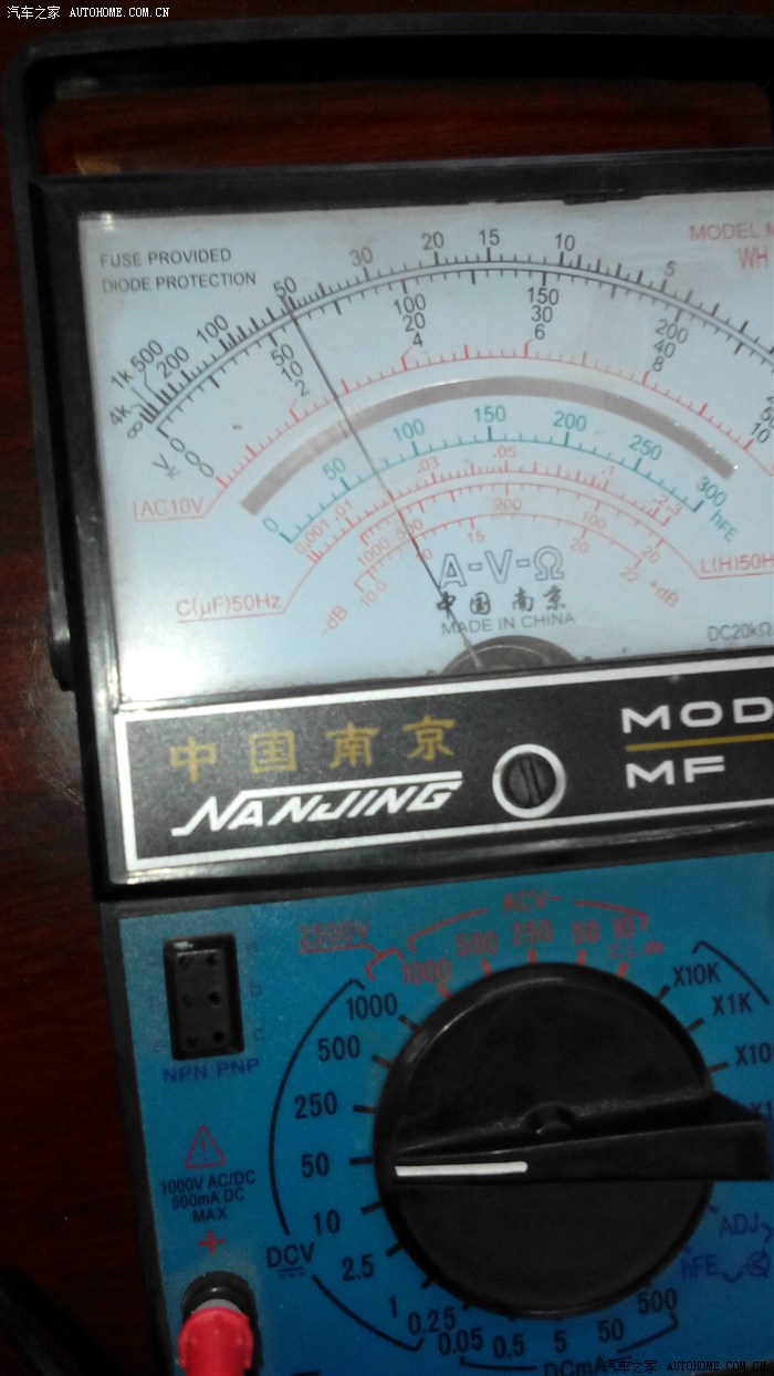 就是这个样子(桌面上的其他东西忽略不计),看不清?放大了看看,要看标了“V—”,刻度为“0,10,20,30,40,50”的那一层数字——