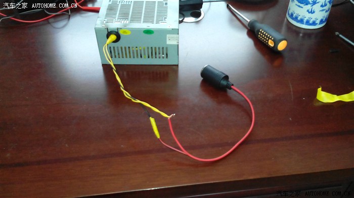 这破玩艺儿,连线色都没标,反正默认的正12V就是黄线,负极是黑线,开关线是绿线。输出的电流也不是13A而是12A,这也够用了。。。下面开始动手术——