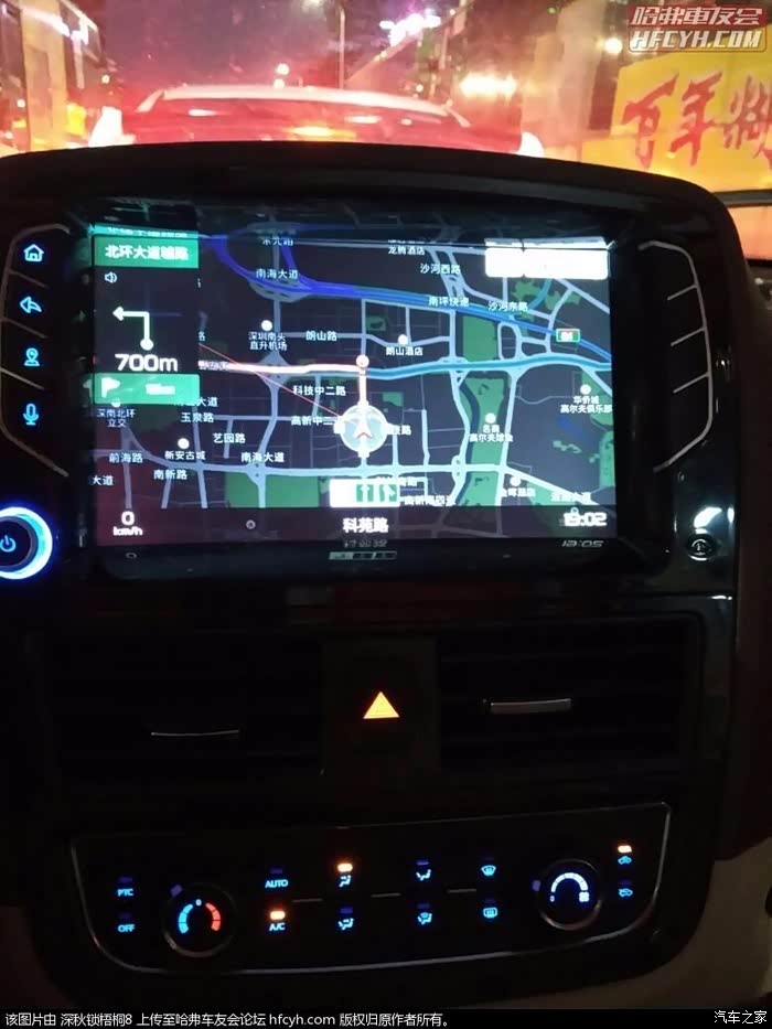 车子内部中控台,便实用型。车子这次导航,这次就是用这次导航仪做的导航,经北环大道,107国道,宝安大道到达目的地。全程大概14公里路程。