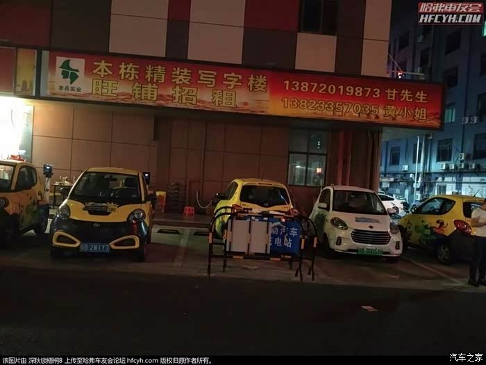 位于西乡客运站旁,老兵大厦附近的马上用车服务点,并排停放的车子正在充电中。