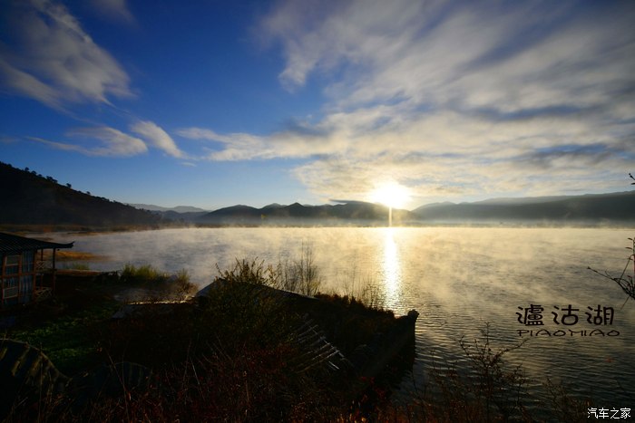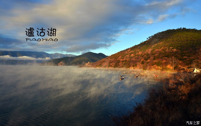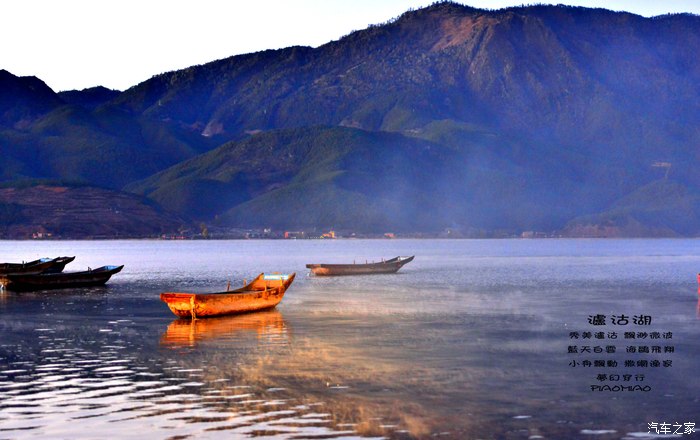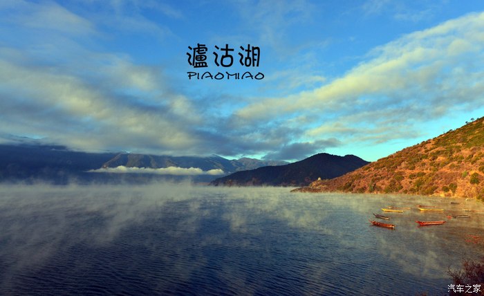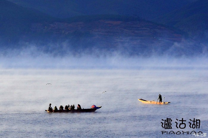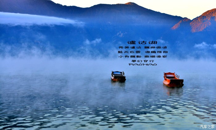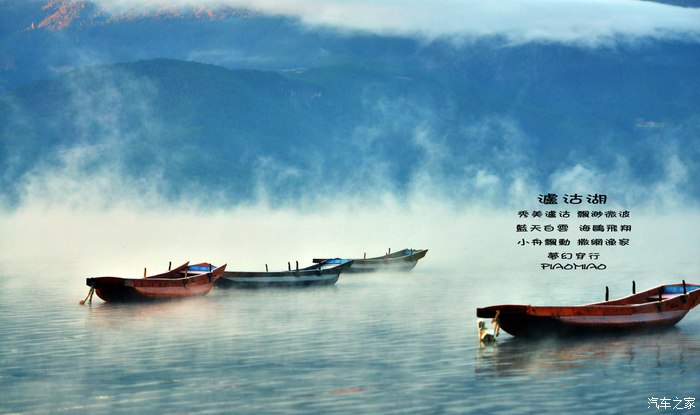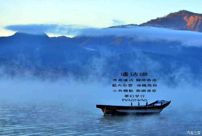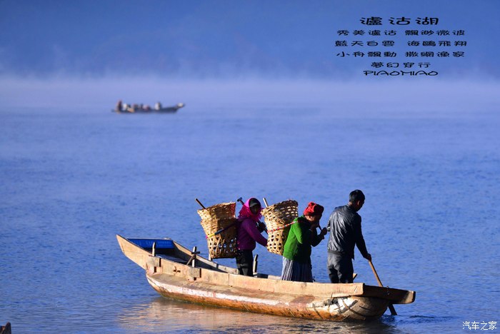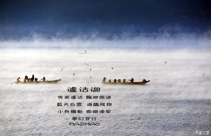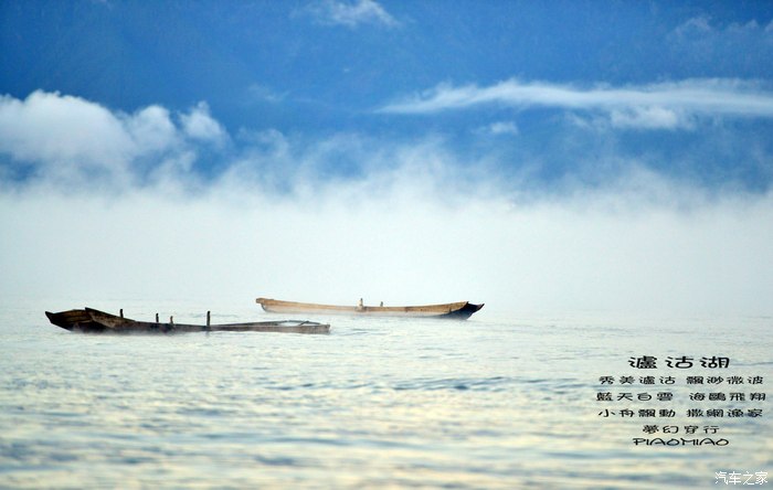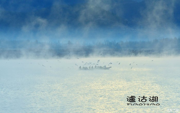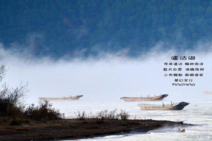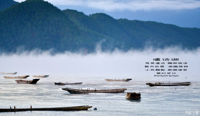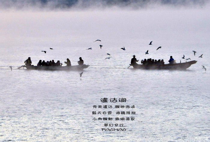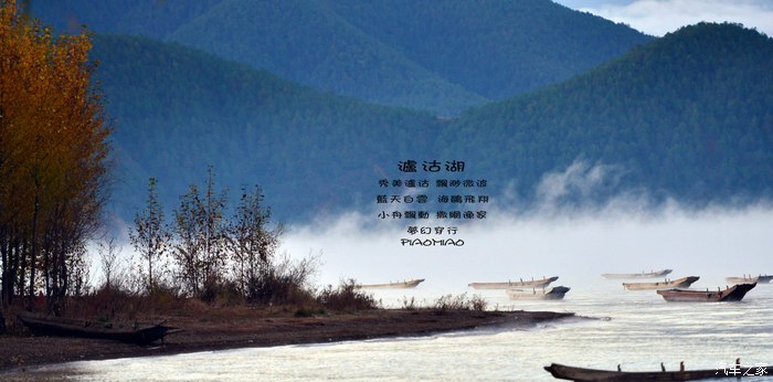行:早上推开穿外,看见湖面上起雾了,匆匆穿好衣服,背起相机跑湖边就卡卡卡,今天 的运气真好,好大的雾。可以用一首诗来形容她的美:秀美泸沽碧玉平,飘渺微波,点点疏星;小舟飘动白云中,撒网渔家,梦幻穿行。