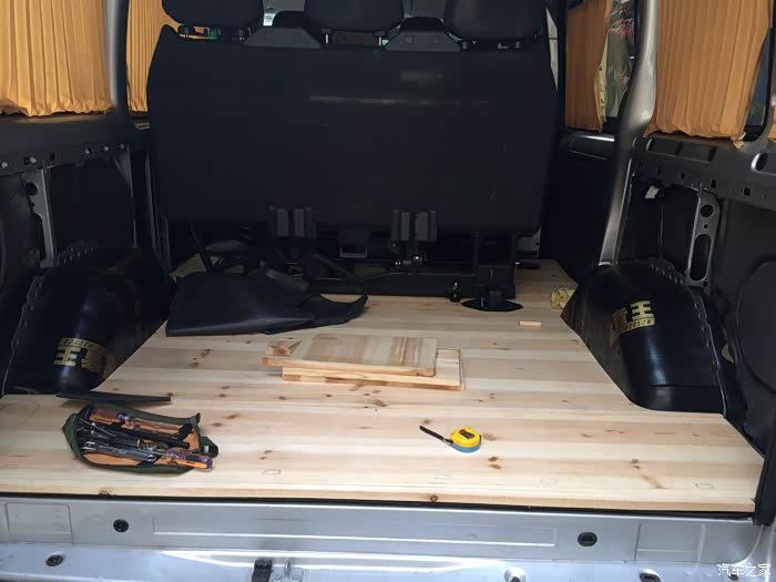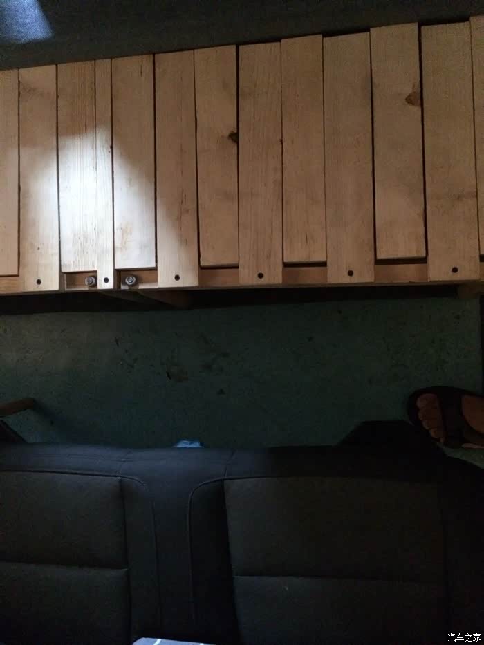 网上买的杉木板替了地板尺寸按原车地板画样、缺点是厚了、还有后面位置分3段联接用的木棒做销子连接不紧实、有时路不上要跳起来有声响座椅底下螺丝垫片加了10个解决