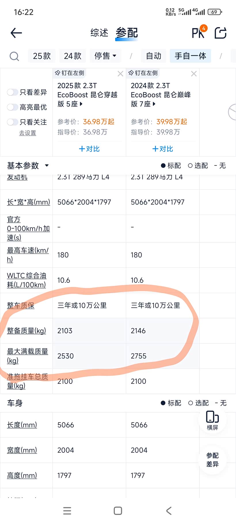 昆仑5座版最大载重量怎么比7座版少那么多?才400多一点公斤?7座版是600公斤多