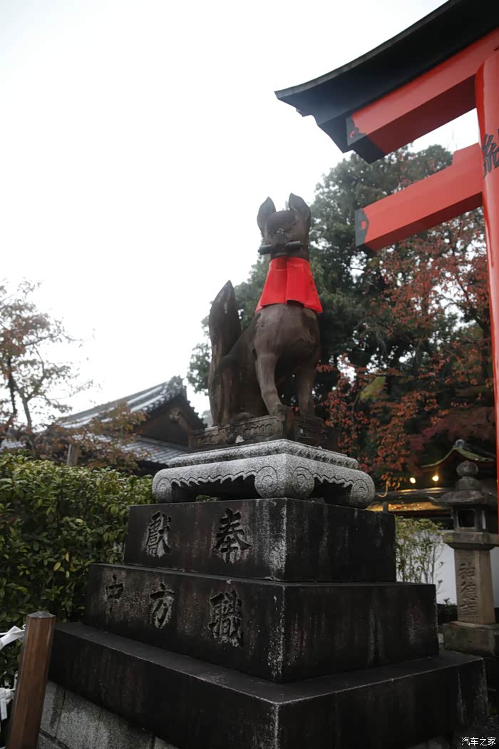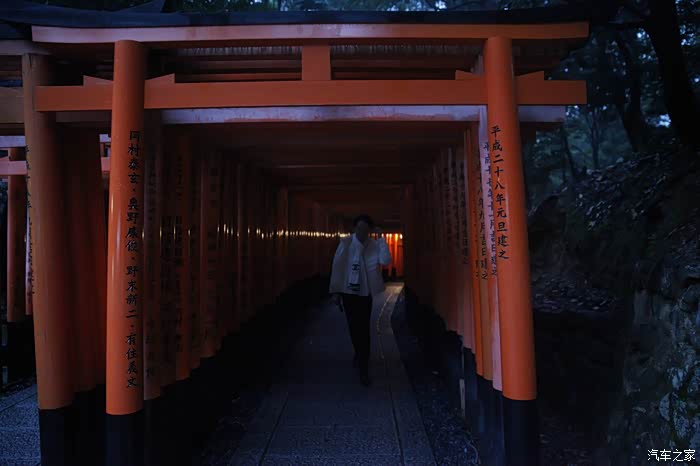 换回便装,看看天色已经有点暗下来,为了节省时间,我们打了个车,从清水寺到伏见稻荷大社,出租车上小朋友跟司机叔叔一起唱pen pineapple apple pen,京都的出租车还是比较便宜的,计价器跳的比较腼腆,大阪的出租车就疯狂了,计较器跳的我血压飙升