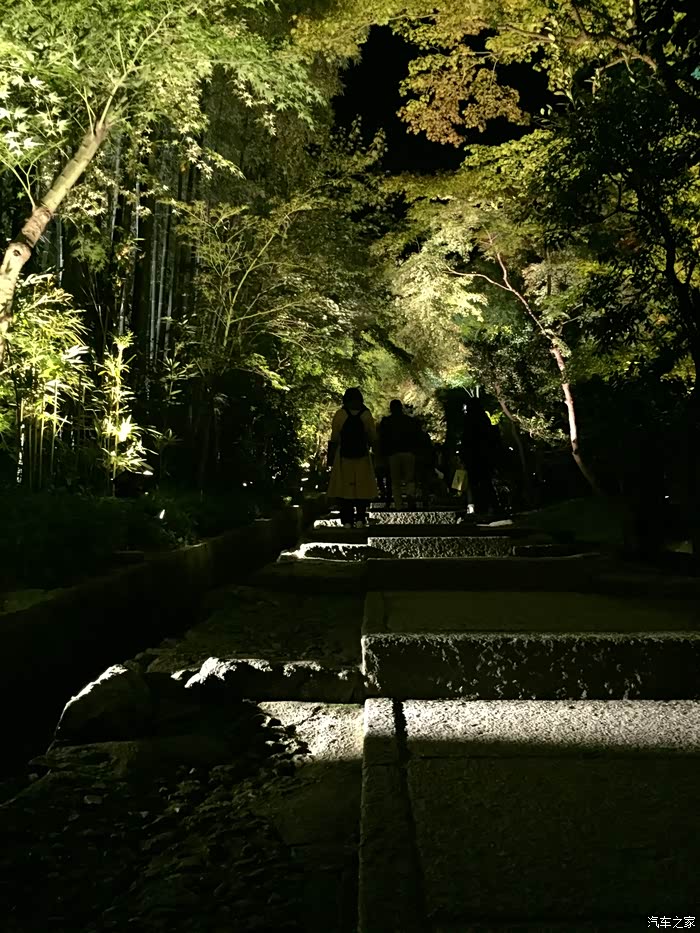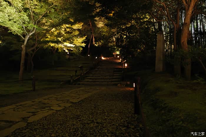 沿着楼梯上高台寺了,灯光设置的柔和有层次,如果再晚一些时候,红叶多一些,会更好看吧