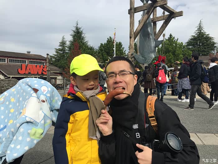 环球影城里有各种卖好吃的小摊,先来一根骨肠吧