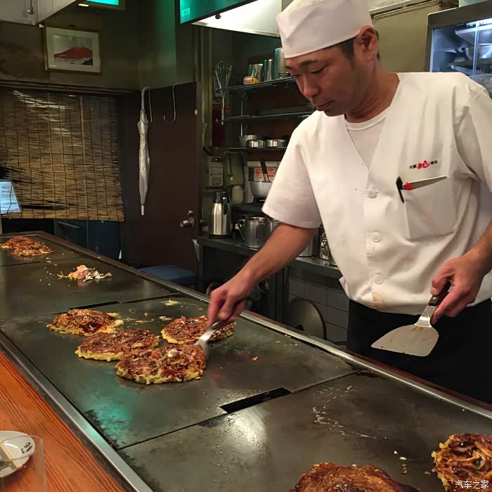 蓝天大厦地下1层,是美食街,有一家很有名的大阪烧叫kiji,trip advisor上排名很前,我们去的时候大概6点多,已经排了很长的队,既然来了,就等吧,排了快一小时,总算吃上了