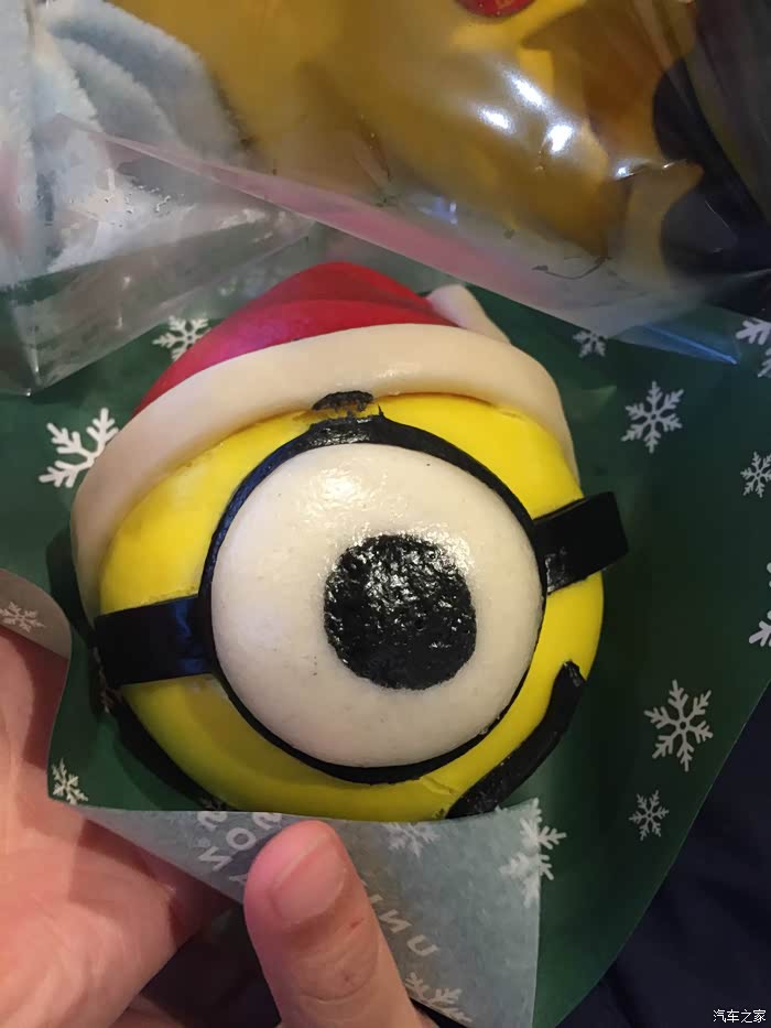 先买个***垫垫肚子,小黄人的***,里面是酱肉馅儿的,挺好吃