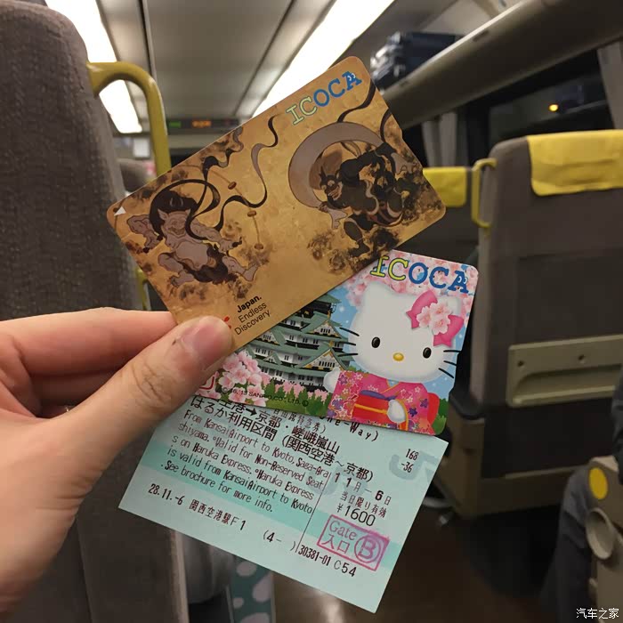 关西机场到京都,最快捷的就是ICOCA&HARUKA,上图左上角那个套餐,HRUKA的票价1600一个人,icoca卡买来,里面的钱可以坐JR,近铁,公交,各种方便啊