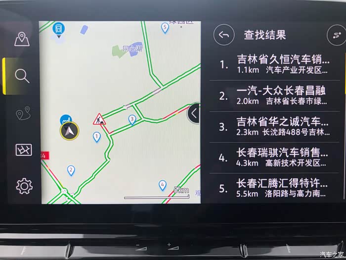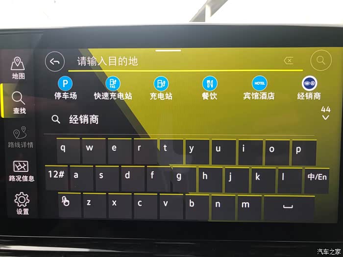 导航系统查找功能更加智能化,系统默认在自车周边查找,有引导路线时可选择在自车周边、目的地、途经点和沿路线周边查找,也可以在任意位置点周边查找。查找界面中,添加了“停车场”、“充电站”、“餐饮”、“宾馆”等快速查找的功能选项,并且,还首次添加了快速查询经销商功能,让您即便身处外地,人生地不熟,也可以快速准确的查找经销商位置,高效解决对经销商的服务需求。