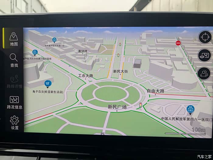 而且,相较于传统的双指捏合调节地图大小的地图比例调节方法,该导航系统做了进一步优化,增加了单指双击放大地图,双指单击缩小地图的操作方法,使得地图大小调节更加方便快捷。