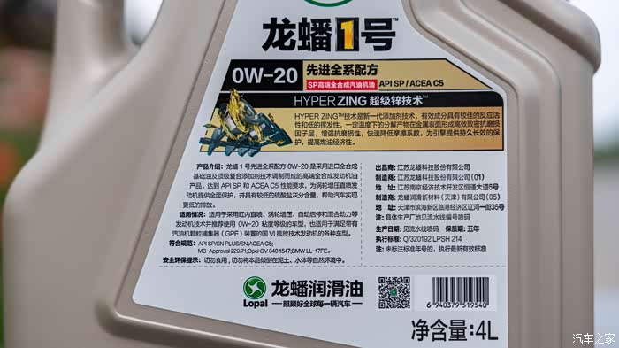 因为我这台是涡轮增压的发动机,因此我需要100度粘度大于12的机油。此款0W-20的龙蟠1号全合成润滑油符合此项要求。