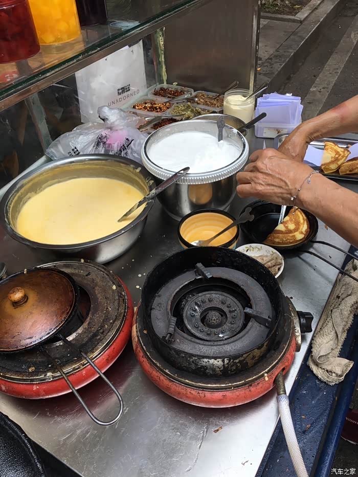 现烤现吃 外表蛋皮酥脆 内里柔软 内馅丰富 有甜有咸 比如:肉松、奶油、巧克力,各类果酱、牛肉丝、泡豇豆、大头菜等等口味。随便路边摊,看到买的人多就去,一般味道都不会差。😉