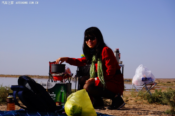 上午本该抓紧时间游玩景点,不成想我们6人却在居延海边开始营炊……