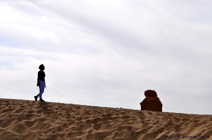 在此之前,从未到过西北大漠,远处的天际和戈壁形成一道直直的交界,有些模糊,有些跳动。不时夹杂近处是高低不同的沙丘和灌木,背对太阳,长长的影子给土黄色的沙际多了一个轮廓,看了许久……