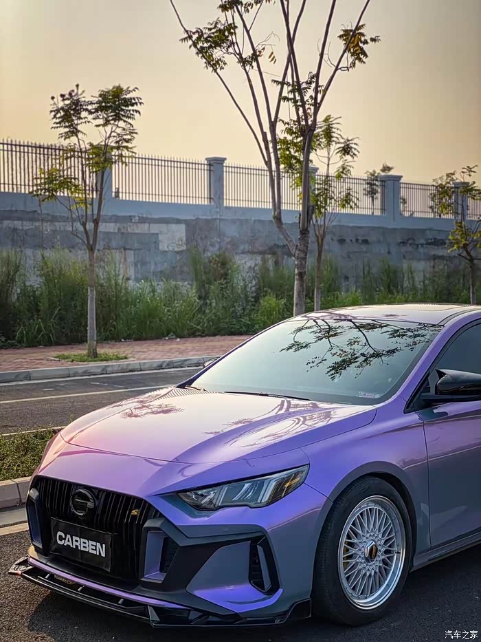 银河战机版在设计上延续“战机主题”,车身主配色为具有变色效果的银河幻紫蓝,这并不是贴膜,而是喷漆工艺。这个颜色让整台车看上去有一种科幻的感觉。真的是爱了爱了