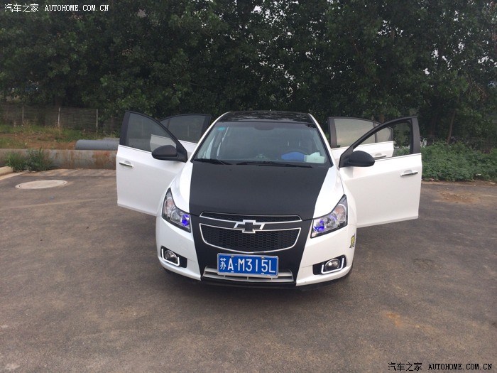 刚贴的碳素黑膜!老婆说丑,哥觉的很霸气45度来一张!耳朵也碳素哦!另一边!车牌就不挡了!满大街都是也不会套牌套到我头上!U形的日行灯小兹会!南京科鲁兹车友会!自己动手喷的白色!还不错吧!无钥匙进入哦!貌似没什么特别的。多功能方向盘一键点火德赛导航加中控。自动光窗器!加后备箱开启功能。行车记录仪这个也是!小兹会的后标!号码不错哈!后标。 碳素+后标灯惯例大鹏展翅蓝色示宽灯最后认证钥匙正面!