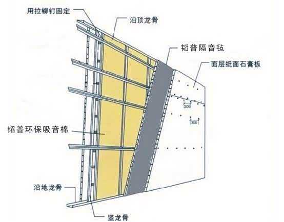 第二种方法是保留原有的隔墙,新加上几根立柱,构成一堵内中塞有玻琉纤维的隔音墙。