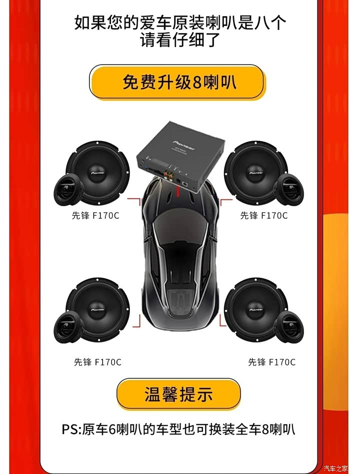 免费升级八喇叭,不好的地方就是中排门板需要打孔
