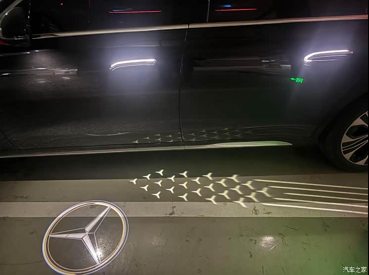 迎宾光毯、隐藏式门把手灯效,仪式感不错。迎宾光毯很有特色,一打开车牌地面上就有logo的光显示
