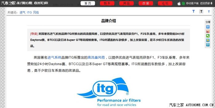 第一,声音跟原厂一样,静音,二,这东西三层过滤,我在也不怕风沙尘土了,他的过滤看是海绵,貌似不是海绵材质,一层比一层过滤细,最后进入发动机的就是干净的空气,三,低扭改善不是一点点,车开起来相当有劲,四,高转一点不比kn69差,自己感觉,没上马力机我也不清楚,只是感受,五,油耗真的低,我车装69一直是9.2下不去了,纯市区,换itg后直接降了一个油,现在8.1,真心棒的东西,亲自感受,真滴,我不是打广告,只是谈谈感受,希望能给犹豫不知道换哪个进气的车友一个好的建议,谢谢大家