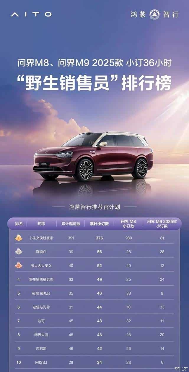 预售火爆背后,“野生销售员”贡献显著。车主“书生女侠过家家”仅凭直播推荐,一天半卖出280台M8,累计订单超1300台。老车主自发带货、自掏腰包送礼,形成口碑裂变,形成“以老带新”裂变效应。数据显示,问界品牌净推荐值(NPS)位列行业第一,90%预售订单来自自有渠道转介绍。