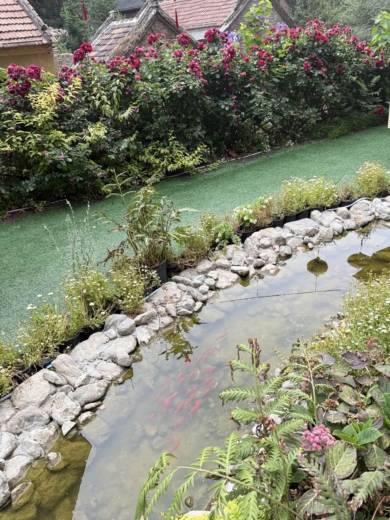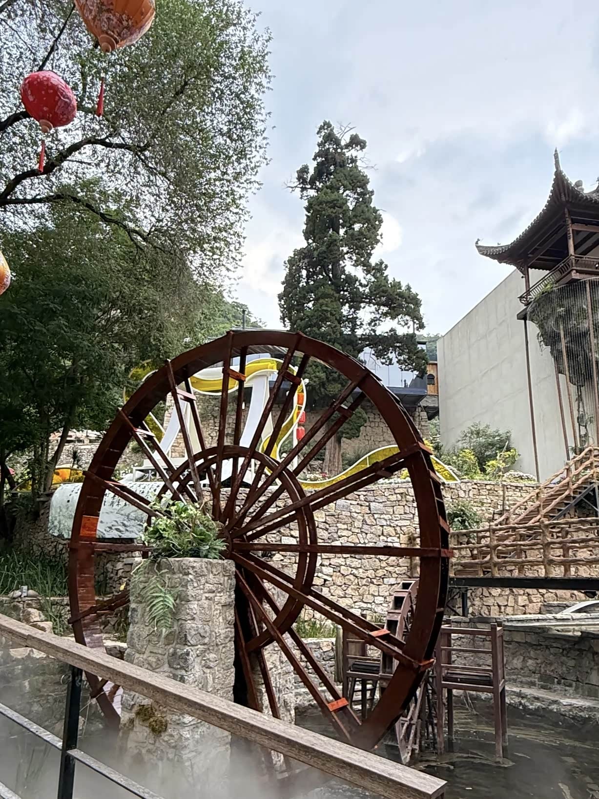 下午时分,我终于抵达了淄博。我的第一站,便是心心念念的红叶柿岩。当我走进柿岩仙村时,仿佛穿越了时空的隧道,瞬间回到了古代。古色古香的建筑错落有致地分布在眼前,青瓦白墙间,绿植垂落,像是大自然精心绘制的画卷。氤氲的雾气在空气中弥漫开来,为整个村庄增添了几分神秘而梦幻的氛围。
