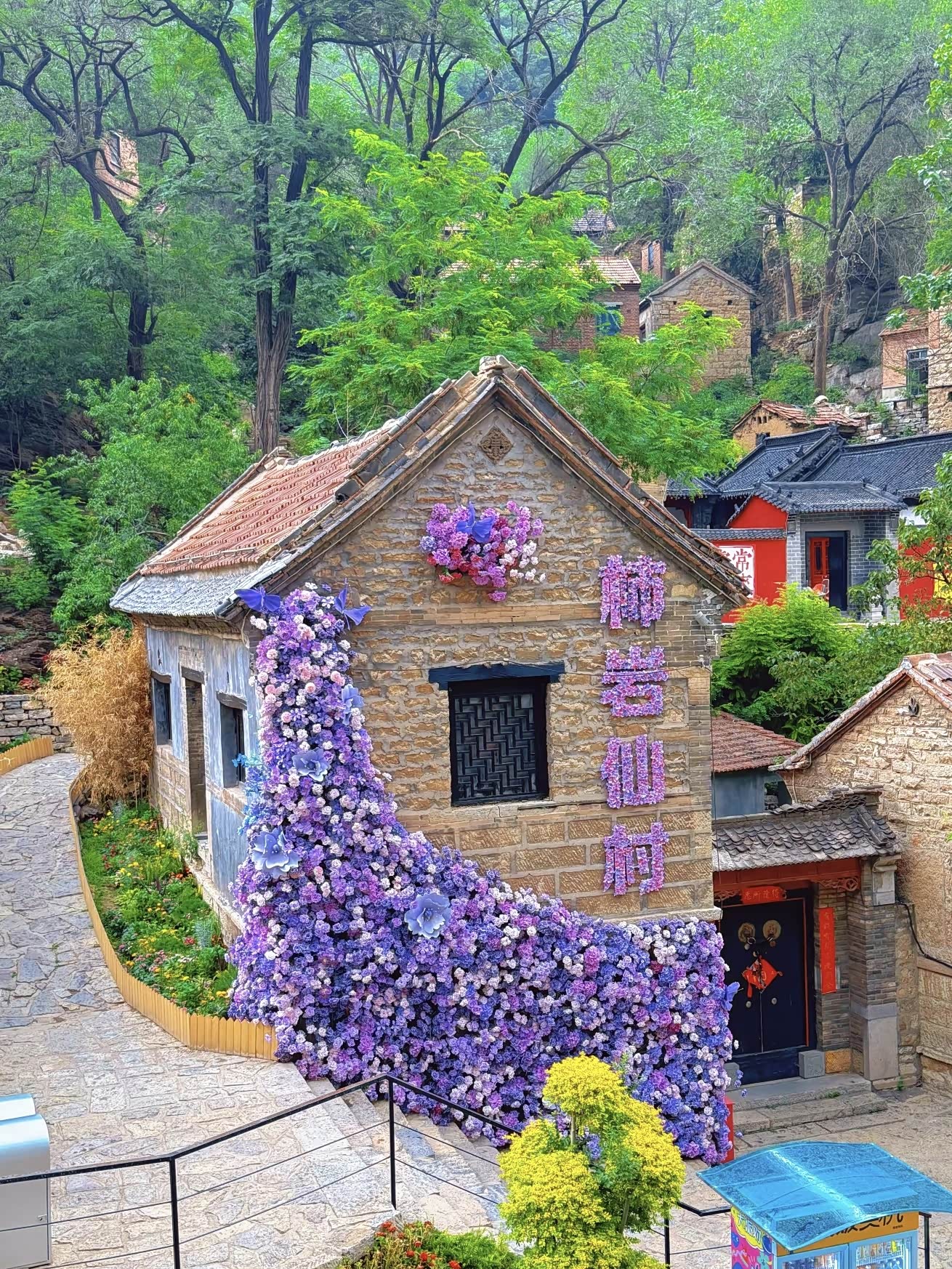 我漫步在村中的小道上,脚下的石板路崎岖不平,却充满了岁月的痕迹。路边的墙上,各种有趣的文案让人忍俊不禁。“我在柿岩很想你”“柿岩仙村,等你来撩”……这些充满创意的文字,成为了游客们拍照打卡的热门背景。我拿出手机,不停地按下快门,记录下这一个个美好的瞬间。