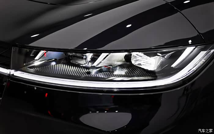 一条贯穿式的灯带将两侧的头灯组相连,搭配中央可发光的品牌LOGO和下方造型独特的前包围,视觉上拉宽了前脸,也显得更加大气。