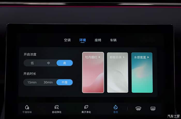 此外,追光PHEV的车载香氛系统还可以提供三种不同味道、三种不同浓度和三种不同时间的选择,让疲惫一天的身体可以在追光的老板座上得到舒缓。
