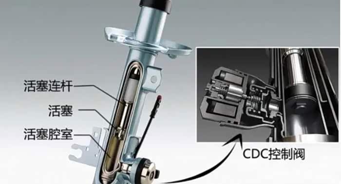 有了具体思路,想要实现这种滤震效果还需要一个硬件就是CDC(Continuous Damping Control自动调节及不间断减震控制系统)。那么CDC减震器是如何实现阻尼调节的呢?
