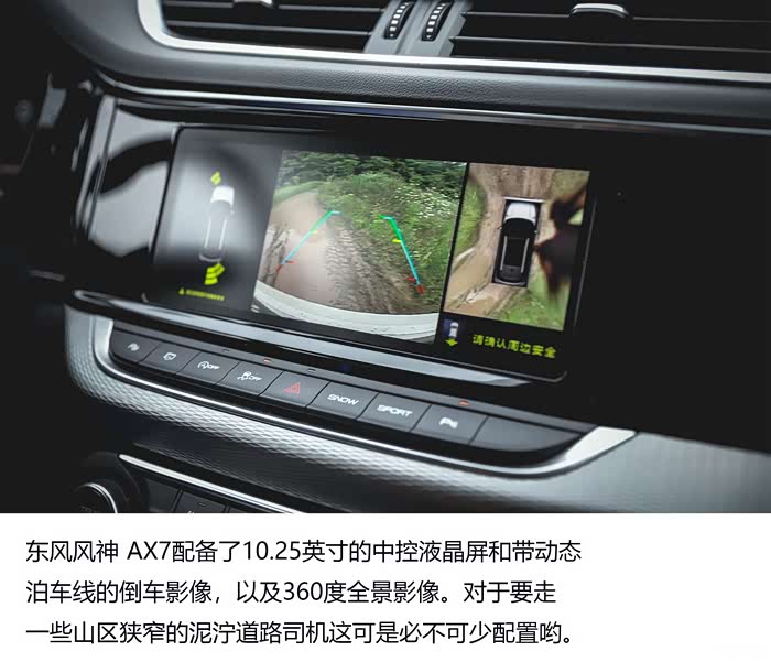 因为有18英寸轮圈、坡道辅助、陡坡缓降这些配置,所以让我们的东风风神AX7这样的大块头在遇见无论什么样的路况都能轻松应对。 我想它正是拥有这些越级的配置他才敢去挑战自家师出同门的军用车一猛士。