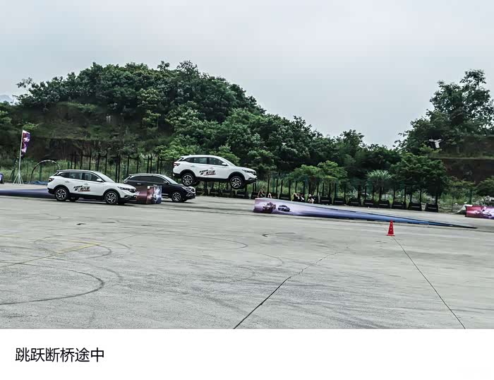 东风风神AX7进行的第三项挑战就是要跨越一座跨度长达7米的断桥。