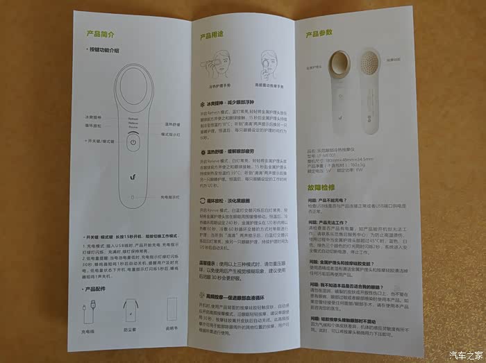 产品充满电大概要三个小时左右,长按电源键开启,就能看到上部有暗色灯亮,并且有英文字母亮起,共计三个档位,分别是冷,热,和冷热交替,灯的色彩也是变化的,当冷热交替档位时,灯是白蓝闪烁的。还是比较好区分的。刚开始使用放在眼睛上,冷热交替档,确实感觉非常的舒服,眼部能得到一定的放松,总共时长约3分钟,在一分半的时候会提示换另一侧眼部。三分钟后会自动关闭,重新开启后,直接把硅胶部放在面部,会产生震动,可以很好的按摩眼部。