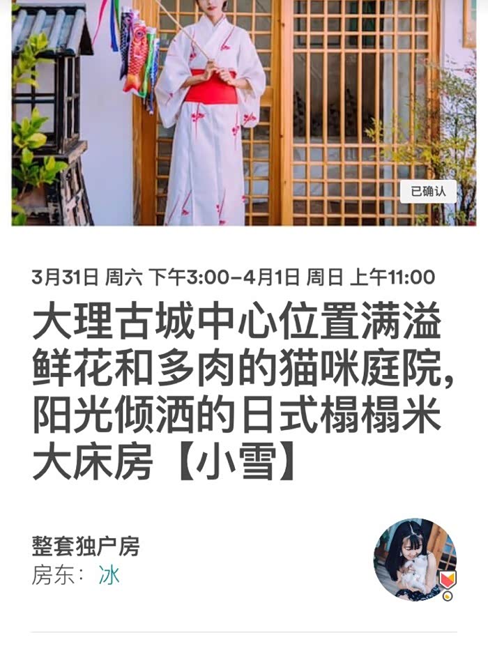 我们订的洱海门的民宿。名字叫日风和风民宿。是个日式小宅子很漂亮。住宿都是女儿订的。