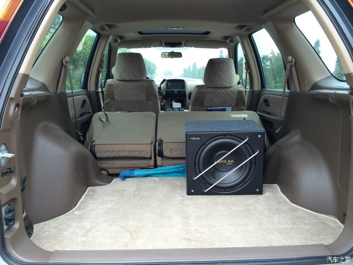后排座椅放倒后空间。原车低音不带劲,本人比较喜欢听人声,后装的低音炮,电池取电