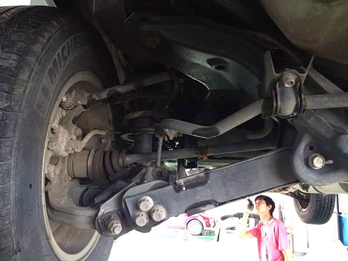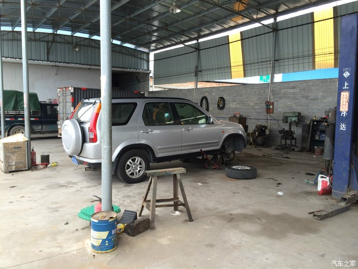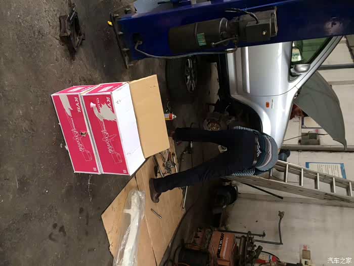 师傅在更换前减震器,工作量挺大的,四条才收200工时费