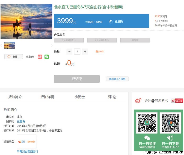 我在8月1号的时候,刷穷游网,忽然发现了巴厘岛的特价自由行团,仔细一看,居然还是中青旅的。