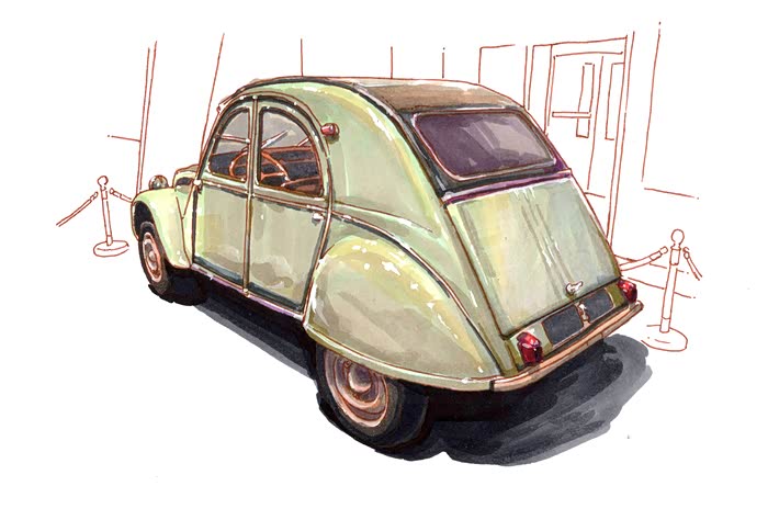 各位车友好!在车展上又见到了雪铁龙2CV,这款曾经画过的经典老爷车依然那么引人注目。今天想和大家分享一下,这款法兰西“国民神车”的魅力所在。